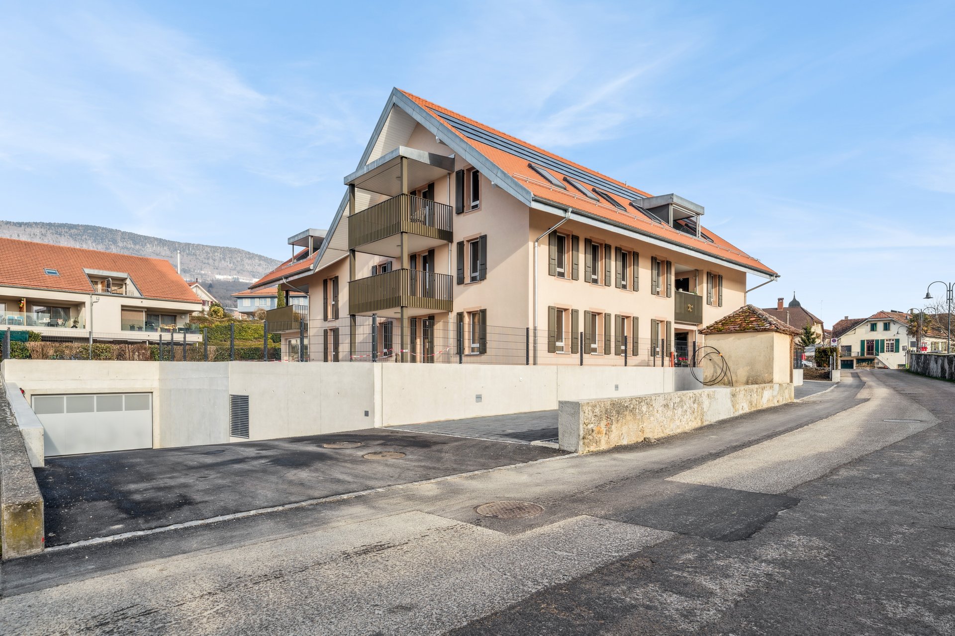 Chaque lot dispose d'une cave privative, d'espaces vélos, ainsi que de la possibilité d'acquérir une place de parc dans le garage souterrain (CHF 40'000.-/unité, en sus).